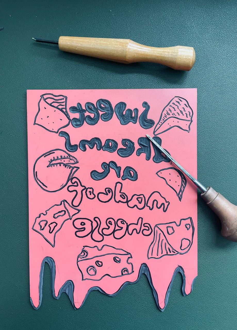 Sweet dreams are made of cheese (Handmade relief print)